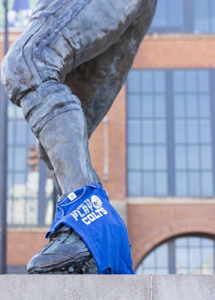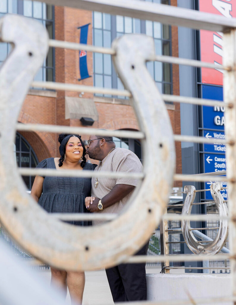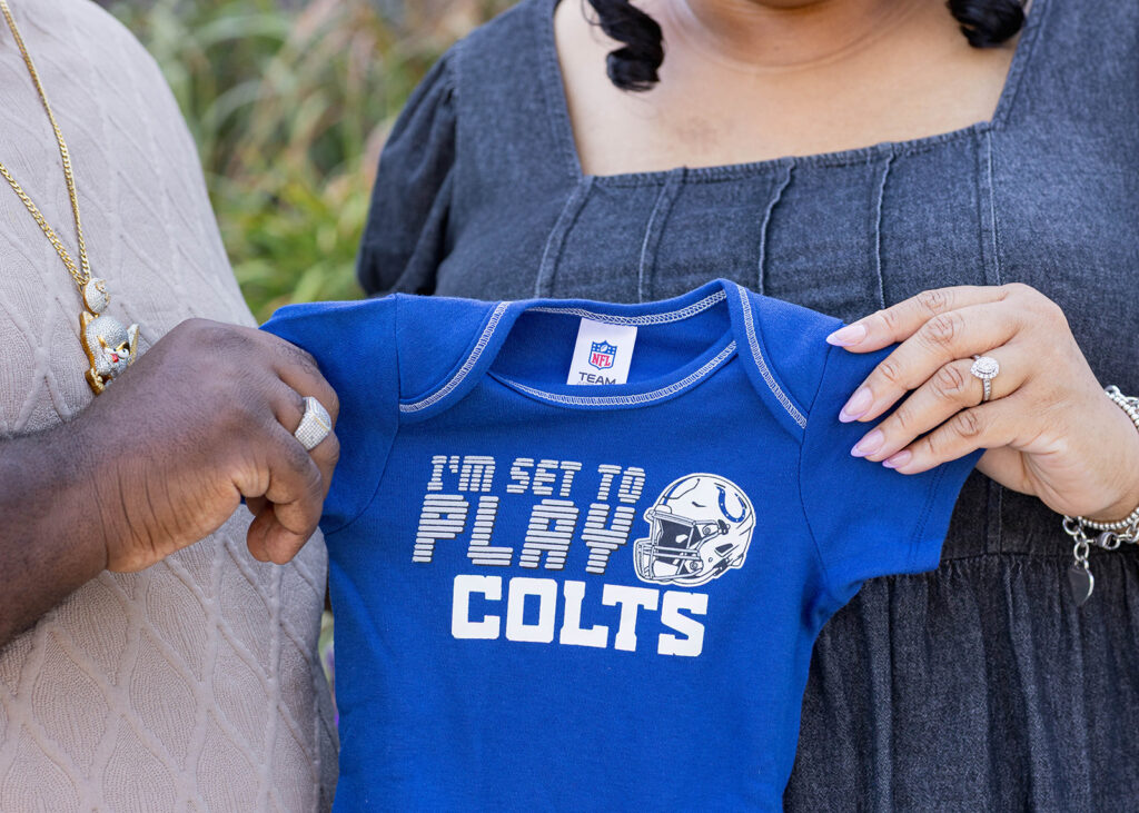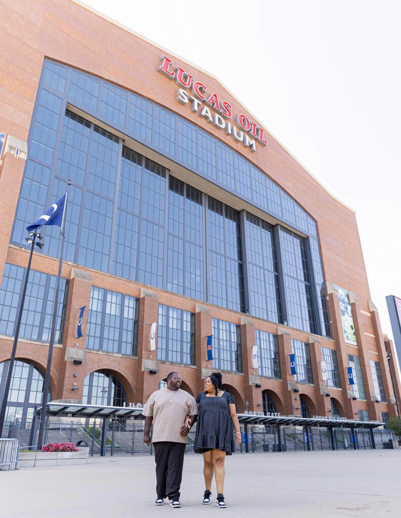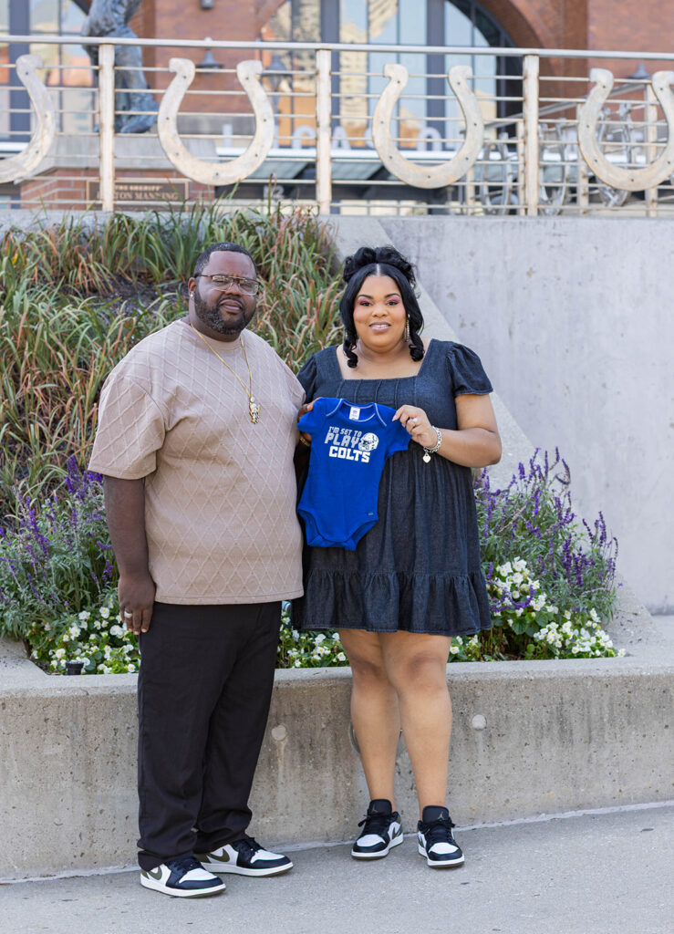 After leaving the church, we headed to the iconic Indiana Colts Stadium to capture some fun photos celebrating their newest little Colts fan on the way. From playful poses to sweet moments of anticipation, the stadium provided the perfect backdrop for their love story and growing family.