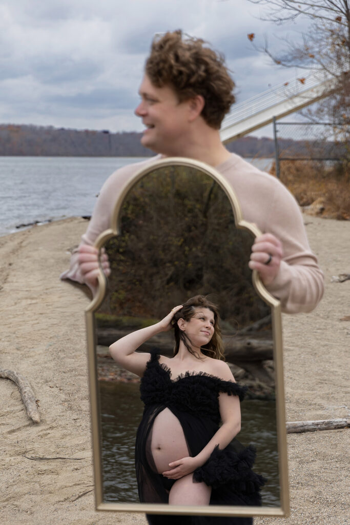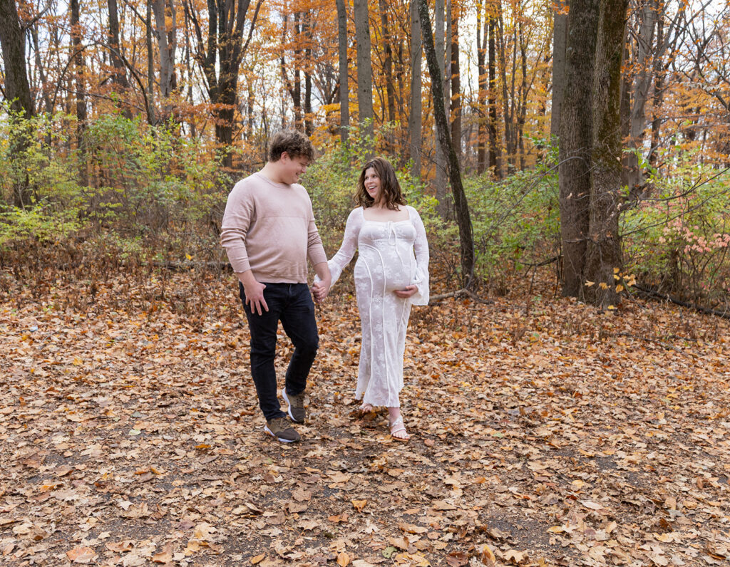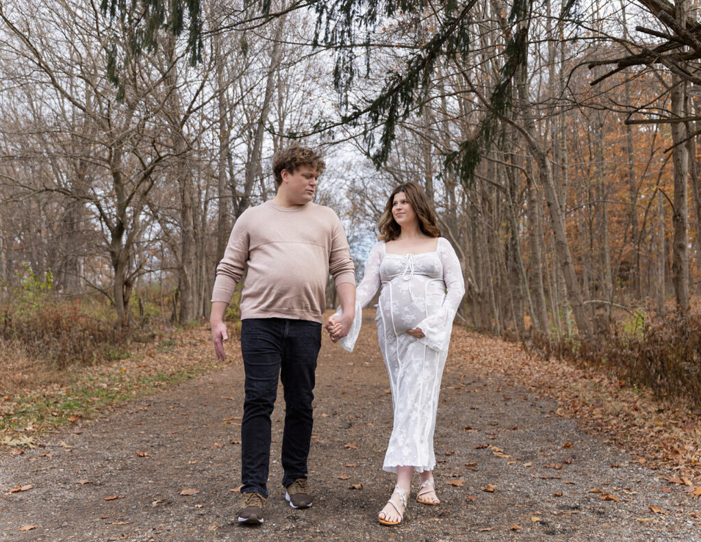 We started their session exploring a few different spots around Eagle Creek Park, one of the best locations for Indianapolis maternity photos. 🌿